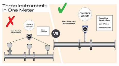 Rather than installing a pressure transmitter, temperature transmitter, flow meter, and flow computer, simplify the installation with one mass flow meter.